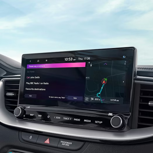Im Kia Ceed Sportswagon bauen Sie neue Verbindungen im Handumdrehen auf: Das gelingt dank seiner neuesten, intuitiv zu bedienenden Kommuniaktionstechnologie. Sie zeigt Ihnen viele hilfreiche Informationen detailliert und schnell ablesbar an. Angefangen bei Live-Verkehrsmeldungen bis hin zu Informationen über Park- und Tankmöglichkeiten.